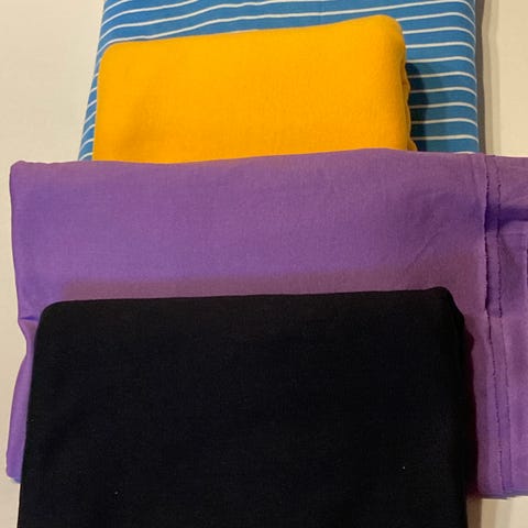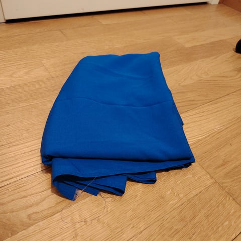 Paketti sisältää useita eri värisiä kankaita, osasta ommeltu ja osa käyttämättömiä, mitat 0,5-1 m.