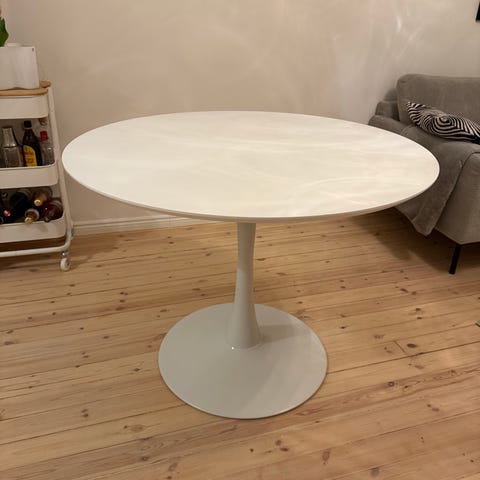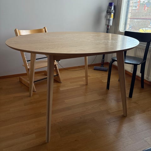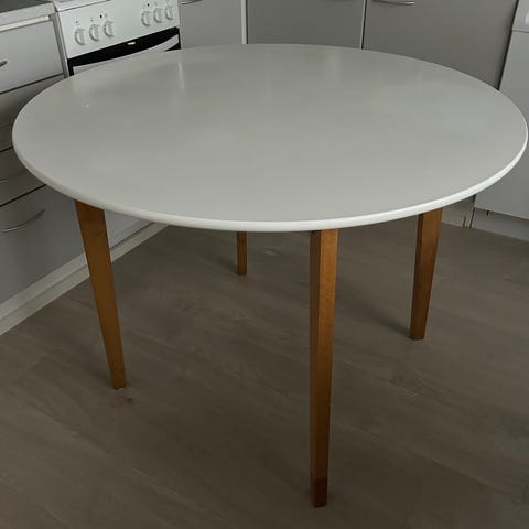 Uuden pöydän tieltä pyöreä jyskin ruokapöytä. Halkaisija 100cm, Hyvä käytetty kunto, kannessa pieni naarmu (kts kuva 2.) Ei itseä tämä häirinnyt. VAIN nouto ja mahd. nopsat kaupat kuin on nyt tiellä