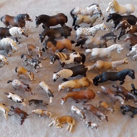 Schleich-hevosia (hinnat yksitellen kuvassa)