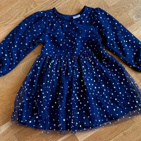 Hyväkuntoinen juhlamekko. Kokolappu puuttuu, mutta arvioisin n. 98 (-104) cm. Käytetty vain juhlissa muutaman kerran.