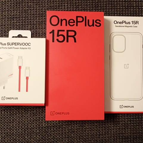 Oneplus 15R 256GB + oneplus buds 4 + oneplus 15R sandstone magnetic case suojakuori.