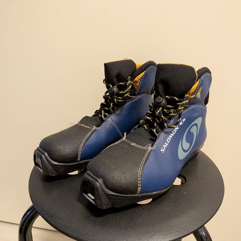 Myydään lasten Salomon merkkiset hiihtomonot SNS siteisiin. Koko 36. Kiinnityksessä nauhat sisäpuolella ja niiden päällä tarraläppä joka peittää nauhat alleen.