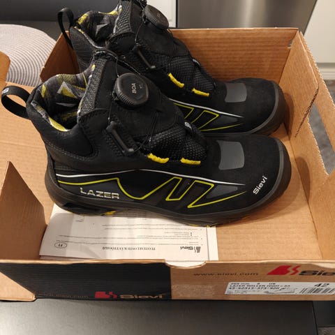 Sievin uudenveroiset turvakengät. Yhden päivän jalassa olleet, työpaikan vaihtumisen myötä tuli erilaiset työkengät itselle.
