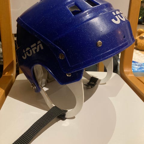 Jofa jääkiekkokypärä koko 49-56 sininen. Kunto ok, käytönjälkiä on, mutta ehjä.