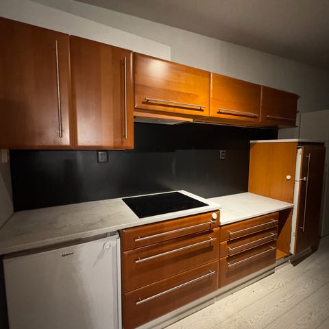 Induktio liesi, kuin uusi. Pähkinän sävyinen kompo. Hyvässä kunnossa. Uuni, mikro, liesituuletin. Jääkaappi ja pesukone ei sisälly kauppaan.