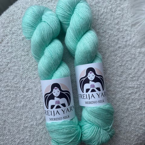 Freijayarn Merino Sock 75 % merinovillaa ja 25 % polyamidia. Langan paino on 100 grammaa ja pituus 425 metriä. Värin nimi Mint cream. Lanka soveltuu erityisesti sukkien neulomiseen.