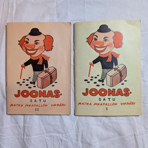 Joonas-Satu Matka Maapallon Ympäri kirja, I osa. Kirja on toimitettu Sok:n Kahvipaahtimo Helsingissä. Sisältää tarinan ja kuvituksia, tarkoitettu lukemiseksi.