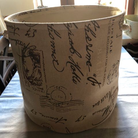 Steltoinen kankainen kori tai säilytyskori. Voidaan käyttää kumminpäin vain. Luonnonvaalea / harmaa puoli sekä musta puoli.