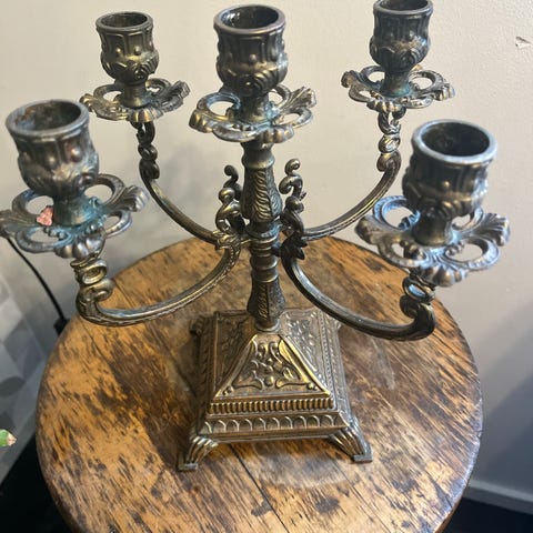 Messinkinen kynttilänjalka, antiikkia