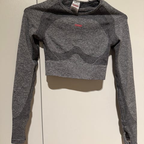 Gymshark naisten treenipaita, koko S, vastaa XS-S. Kangas on venyvää ja paksuhkoa, cropped malli. Paita soveltuu urheiluun ja kuntosaliharjoitteluun. Käytetty alle 5 kertaa.