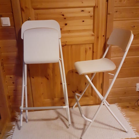 Hyväkuntoiset Ikean baarituolit. Pientä käytön jälkeä, kun eivät uusia ole. Noudettavissa Hämeenlinnasta ja kuljetus järjestyy myös lähiseudulle ilmaiseksi ja kauemmaskin korvausta vastaan.