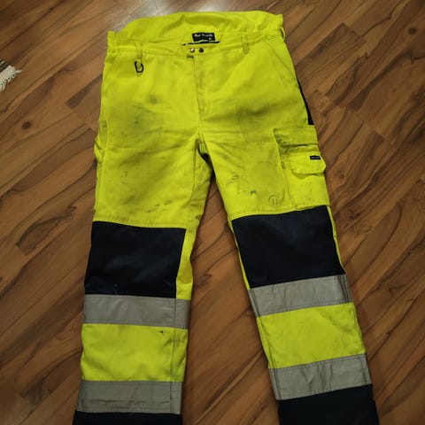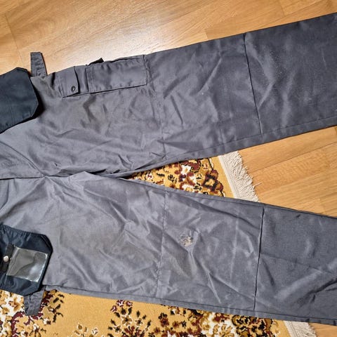 Myydään miesten työhousut, kokoa XL, merkki Kraft. Vyötärönympärys 104 cm, lantion ympärys 136 cm, housujen pituus 113 cm. Edessä vetoketju, ehjä. Toisessa lahkeessa vähän maalitahraa, sen varmaan saa pois puhdistamalla, muuten hyvässä kunnossa. Hinta 7,- lisäksi Toridiilin toimitusmaksu.
