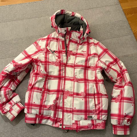Tummansininen laskettelutakki. Lämmin. Paljon taskuja. Irrotettava huppu. Tuuletusaukot kainaloissa.