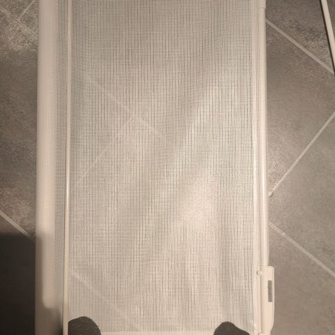 Emma rullaoviportti. Siisti kunto, ollut vähällä käytöllä. Turvaportti kiinnitetään aukon pieliin ruuveilla. Sopii max 140 cm aukkoon. Portin korkeus kiinnikkeineen 90 cm.