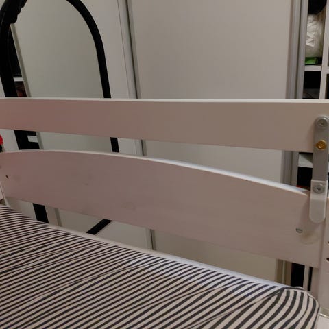Lasten sänkyyn valkolakattu turvalaita, käytetty. Nouto limingasta