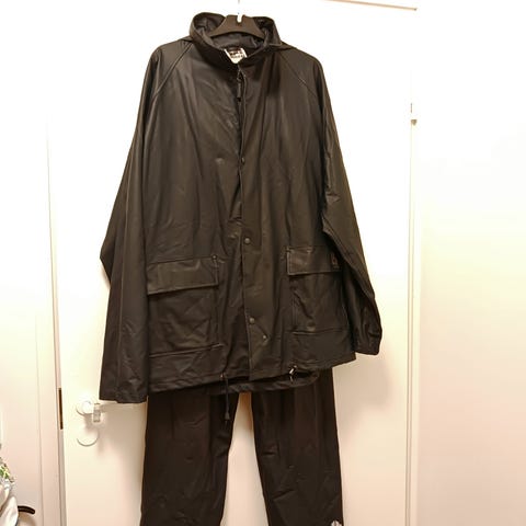 Sininen sadeasu, takki ja housut. Koko XL. Nouto tai postitus.