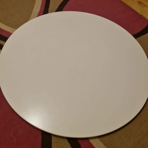 Musta pyöreä ruokapöytä. Pieniä käytönjälkiä.