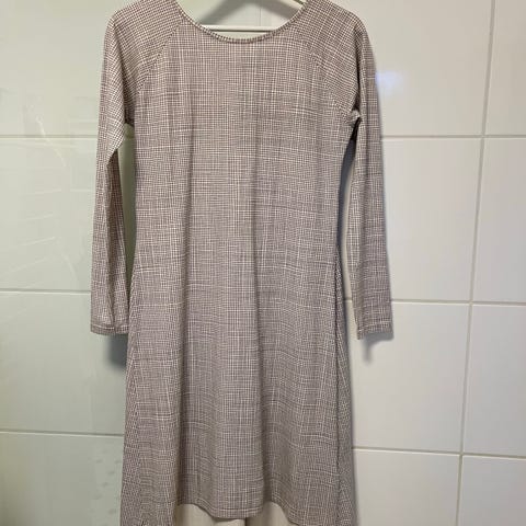 Papu naisten mekko, koko M. Mekko on valmistettu puuvillasta ja väriltään punainen, kaupunkien nimet.