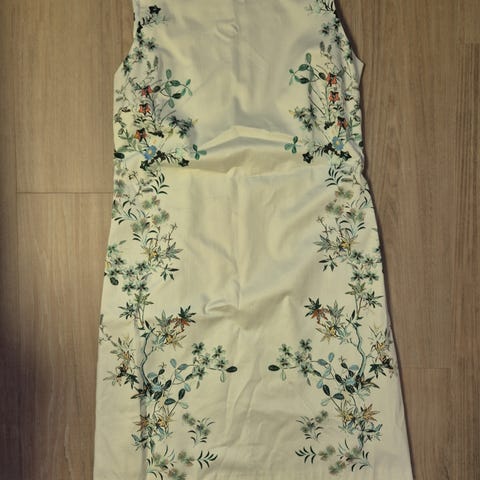 Mekossa on vuori ja pieni halkio takana, vetoketju ja hakanen selässä. Mekossa on irroitettavat naruolkaimet, joiden hakaset hieman löystyneet. Mekko on suht tukeva, joten on pysynyt yllä ilman olkaimia.
