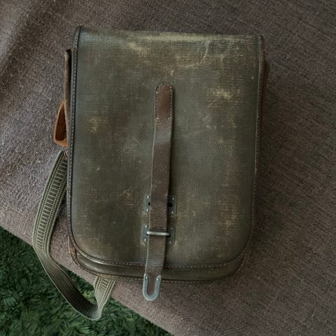 Vanha hyväkuntoinen ja nahkainen karttalaukku.
