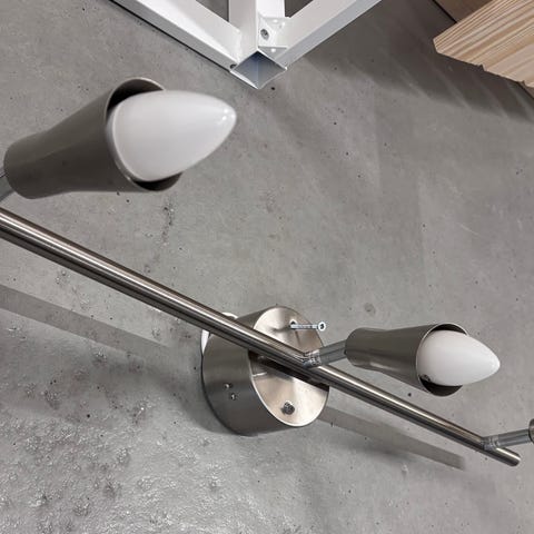 Mustalla rungolla pistokkeellinen kattovalaisin, sisältää polttimon. Pehmeä valo lampussa.