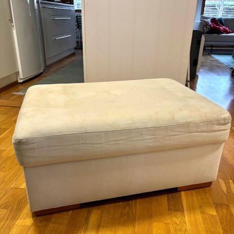 Tarpeettomana vaaleanruskea iso vankka rahi, alcantaran tyyppinen "elävä" materiaali. Menee rahina tai vaikka brittityyliin sohvapöytänä. Koirakoti, nyt odottaa noutajaansa terassilla. Nouto Vihdin Kirkonkylästä, MobilePay tai käteinen.