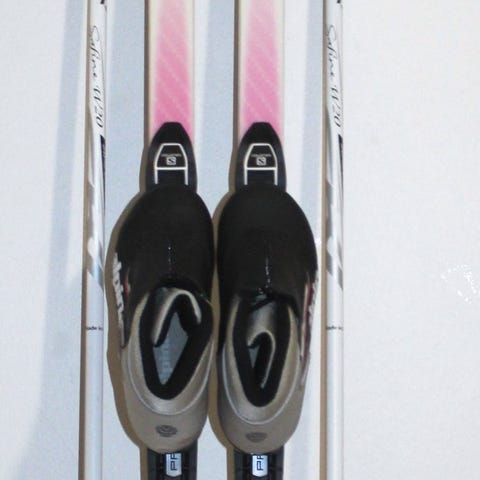 Lisäksi pakettiin kuuluu sukset ja sauvat yhdesspitävät kiinnikkeet x2, suksipussi ja luistovoide.