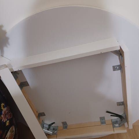 Valkoinen pyöreä ruokapöytä, leveys 100cm, pöytälevyn materiaali MDF ja jalat metallia. Jaloissa ruuvit joilla pöydän saa säädettyä suoraan epätasaisellakin lattialla.