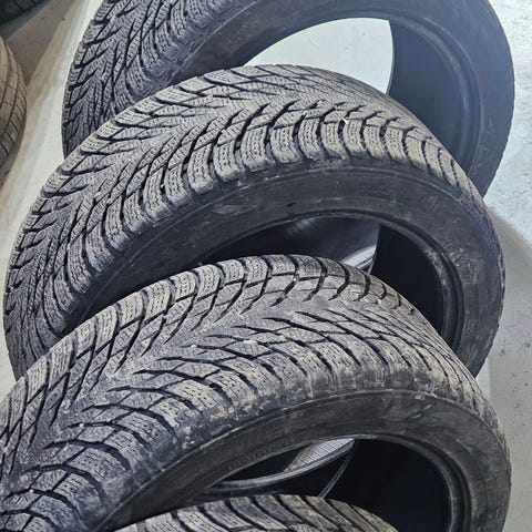 4kpl 235/50R19 tasaisesti kuluneet Nokian Hakkapeliitta R5 kitkarenkaat. Pintaa noin 8mm, kaikissa renkaissa näkyy haalea 8mm merkki Dot 15/23.