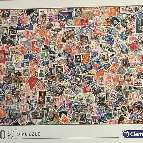 Jumbo: Cat Stamps, 1000 palaa. Kierrosta tullut, oikein hyvässä kunnossa. Kaikki palat tallessa ja pussitettu.