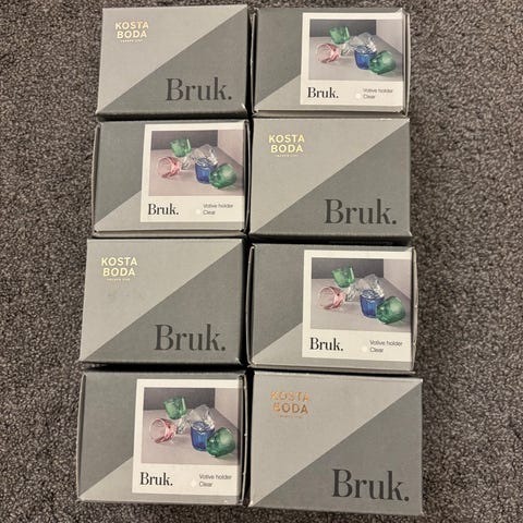 Kosta Boda koriste-esineet kirkkaasta lasista. Tuotteet ovat läpikuultavia ja niissä on koristeellinen, teksturoitu pinta.