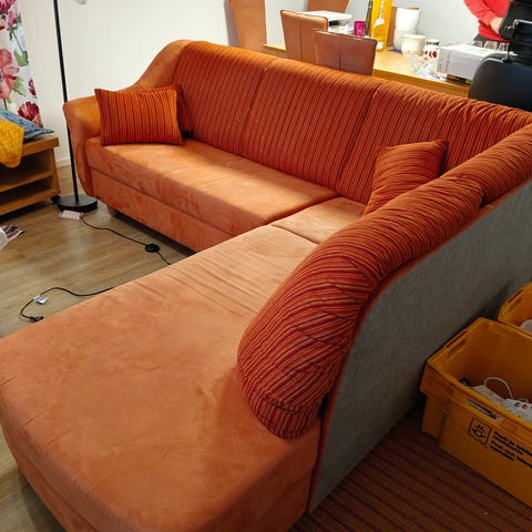 Tyylikäs konjakinruskea vuodesohva säilytystilalla. Joitain vaurioita nahan pinnassa, mutta ei kovin silmäänpistäviä. Vain nouto ja oma kantoapu mukaan.