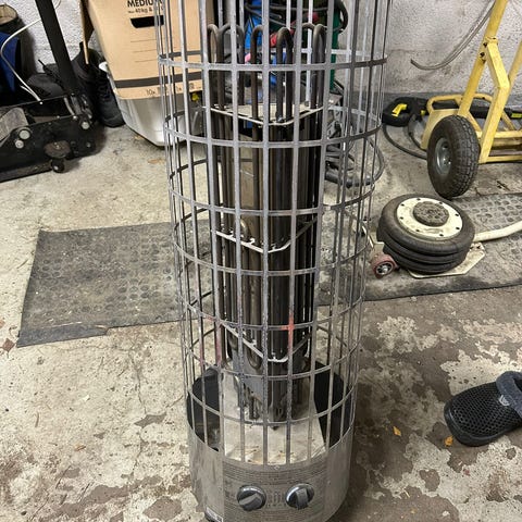 Myydään Harvian kiuas, joka antaa kauniin valon lasiluukusta ja pehmeät löylyt.