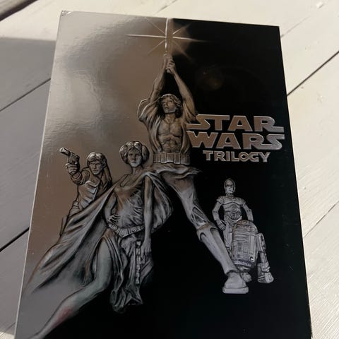Kuvassa näkyvät Star Wars -leffat. Kaikissa suomitekstit.