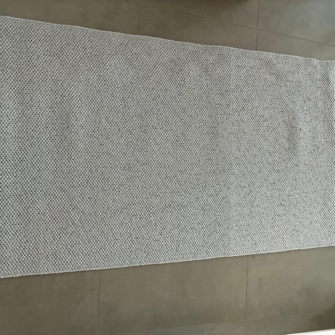 Käyttämätön laadukas VM-Carpet käytävämatto, joka on väriltään siniharmaa. Matto on ollut rullalla ja kuvat otettu matolle liian ahtaassa paikassa. Matto on teetetty mittatilauksena. Matossa on kapea kanttaus jokapuolella ja kulmissa vahvikkeet, jotta ne eivät kipristy.