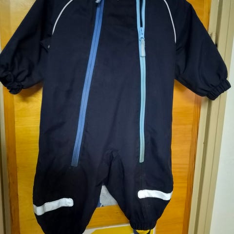 Yhden lapsen käytöstä. Vain muutamia kertoja käytetty. Ei ole pesty kertaakaan, ominaisuudet tallessa ja fleece pehmeä. Takapuolessa joku haalea jälki, ei hypi silmille, kts. kuva. Ihan paras haalari välikauteen ja jopa pienille pakkasille.