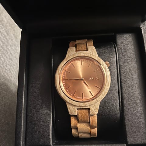 Allergian takia 3,5 viikkoa sitten ostettu aarnin kaunis kello nahkarannekkeella. Käytetty 4:nä päivänä. Haku Laajasalosta tai postitus.