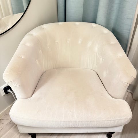 Todella mukava istus ja kivan leveä nojatuoli. Hyvä väri!