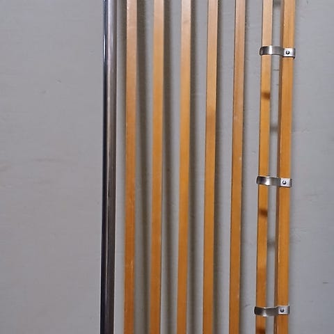 Siisti naulakko, jossa 6 vaatekoukkua ja tanko henkareille sekä hattuhylly.