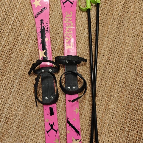 Myynnissä lasten kenkään kiinnitettävät 90cm pitkät ensisukset ja niihin kuuluvat sauvat. Merkki: peltonen