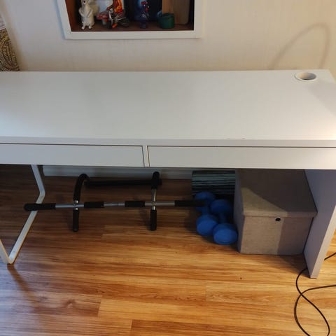Myyntiin hyväkuntoinen Ikean Micke työpöytä valkoisena. Koko 142x50 cm.