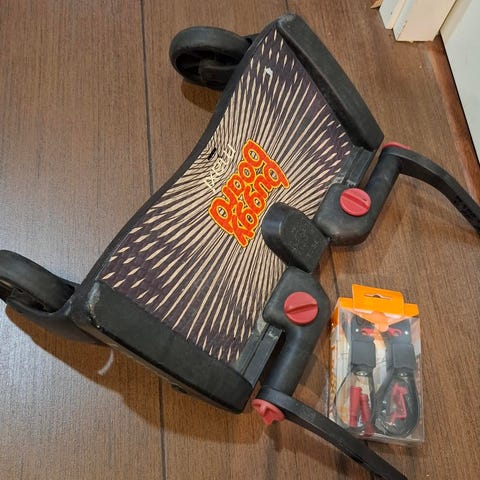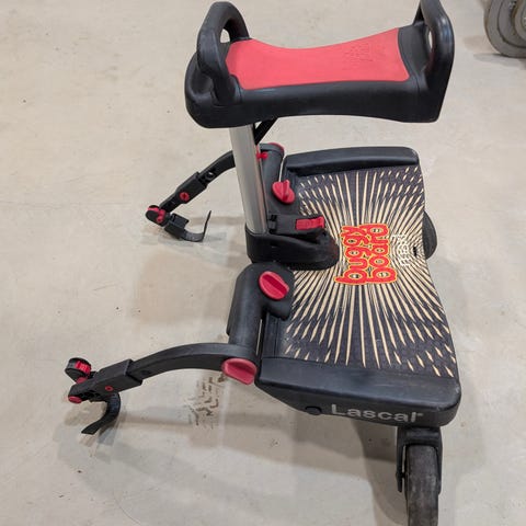 Lascal BuggyBoard Maxi on seisomalauta, joka sopii useimpiin lastenvaunuihin ja -rattaisiin. Kaikki osat tallella alkuperäisessä laatikossa. Siisti käytetty kunto.