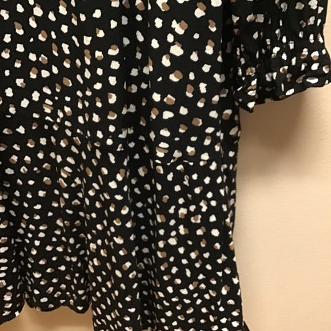 Reiluhkoa kokoa, kainalo-kainalo 51 cm olka-helma 135 cm. Kaula-aukkoa voi pitää ylempänä tai off-shoulderina, ihana levenevä helma, istuu monelle vartalomallille.