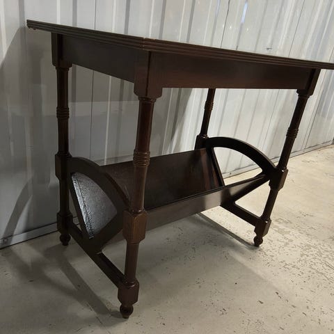 Vähän harvinaisempi ”pöytä”. Kanteen ja pohjalle laitettu levyä, jotta pysyy paremmin ryhdissään ja tavarat ”pöydän” päällä. Lukon avain todennäköisesti hukkunut, lukko auki ja kannen saa laukun remmeillä kiinni. Nouto. Käteinen / MobilePay