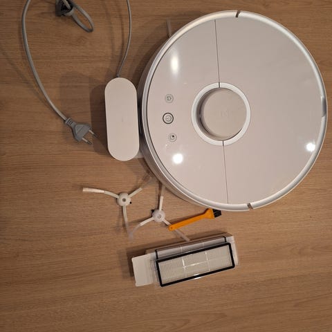 Roborock robotti-imuri, väri valkoinen. Toimii hyvin ja on ollut todella vähällä käytöllä. Mukaan lataustelakka.