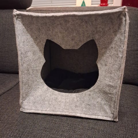 Söpö ja rapiseva kissojen pesä. Sisältä sateenkaaren värinen, koska yksisarvinen.. Kangas pehmeä sisäpuolelta ja ulkopuoli jotain rapiseva ja kiiltävämpää. Omat kissat eivät innostuneet tästä. Kulkeutuu omien menojen mukaan myös Maskun keskustaan tai Myllyyn.. Myös postitus.