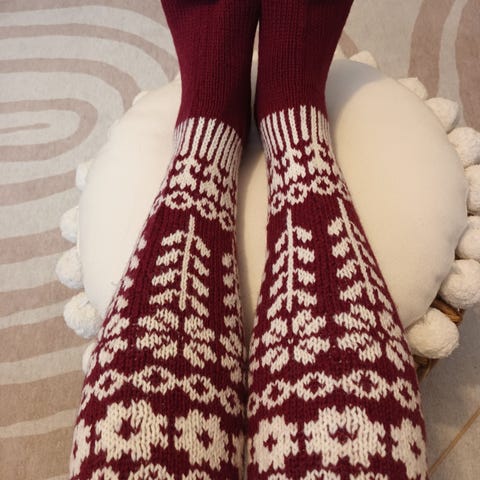 Uudet, käsinneulotut villasukat, polvipituiset villasukat vahvistetulla kantapäällä. Lankana Novita Nalle ( vaaleanpunainen) ja 7-veljestä ( valkoinen). Malli "Muumimamman puutarha ". Koko 37-38. Vastaavanlaiset myös kirjavana tai valko/mustana saatavilla.