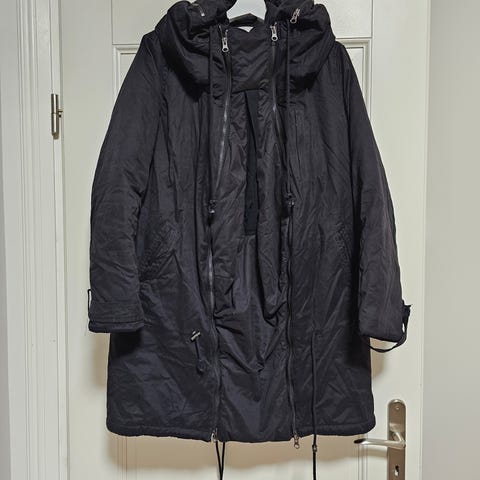 Myydään tummanharmaa Mamalila äitiys- ja kantotakki koko XS. Materiaali 100% villaa, myös tuulenpitävä. Monikäyttöinen siistikuntoinen takki, jota voi käyttää tavallisen takin tapaan, lisäosion kanssa raskausaikana sekä kantopaneelin kanssa kantotakkina lapsen ollessa kantorepussa tms. joko vatsa- tai selkäpuolella. Olka-olkamitta n. 40cm, kainalo-kainalo n. 43cm ja olka-helma n. 85cm.