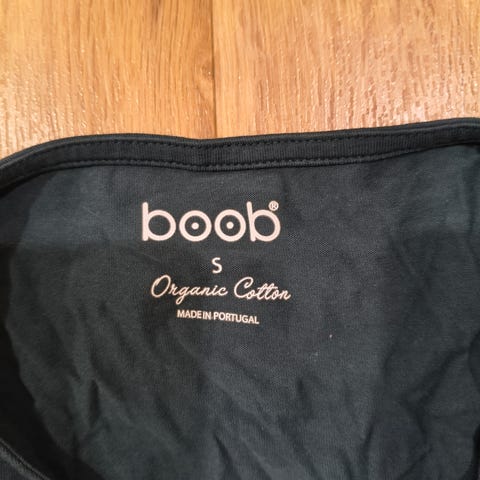 Boob raidallinen paitamekko imetykseen. Koko L. Pohjaväri beige ja hyvin tummansiniset raidat. Matsku paksuhkoa puuvillaa, ohuen neuleen tyyppinen kangas. Paikoin nukkaa kankaan pinnassa, muuten siisti ja hyväkuntoinen.