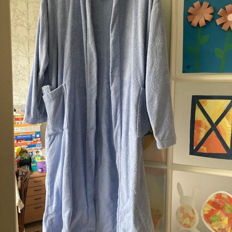 Kylpytakkia vain sovitettu. Ei ole ollut käytössä. Laput kiinnitettävissä ja kylpytakin oma pussi löytyy. Voi antaa esim lahjaksi.